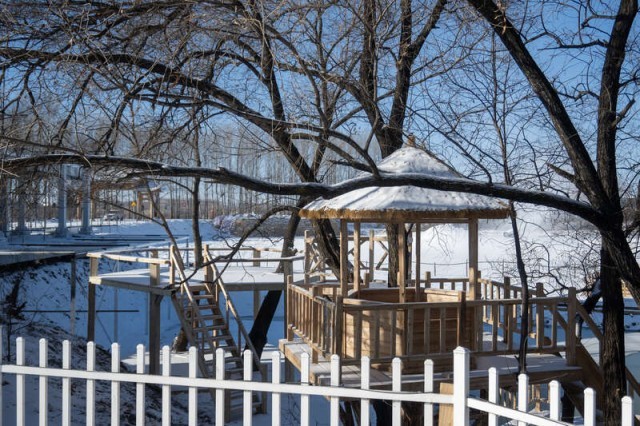 呼兰河公路桥是张宝巡河的必经之地。从这里出发,再沿呼兰河往上游走四千米,一家名为“岭尚十年”的创意民宿正在为迎接寒假研学团做着准备。