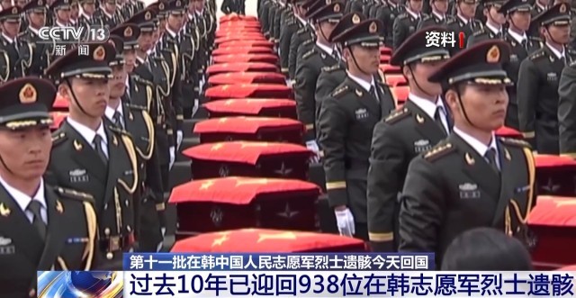 在抗美援朝战争中,我国共有19.7万多名英雄儿女献出了宝贵生命,祖国始终没有忘记那些长眠于他乡的英烈们。从2014年到2023年,我国用最高礼遇已迎回十批938位在韩中国人民志愿军烈士遗骸。