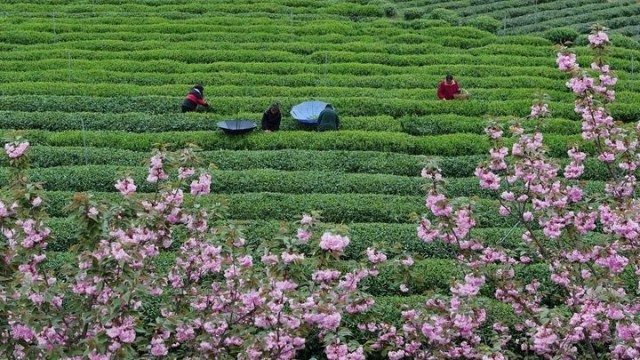 走进贵州印江土家族苗族自治县缠溪镇湄坨村,2600多亩的茶园随山势起伏,让人目不暇接。