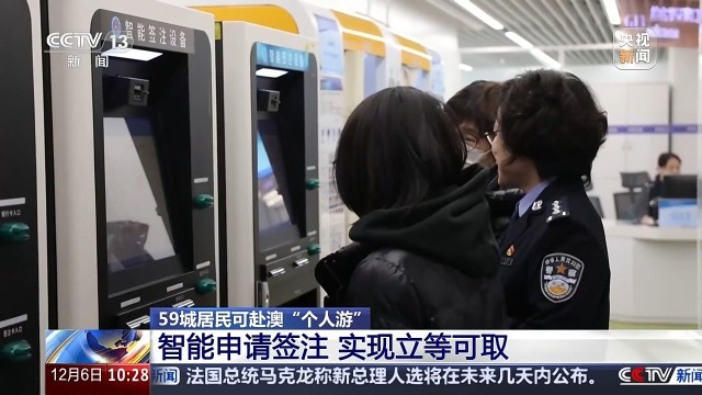 59城居民可赴澳“个人游”智能申请签注 实现立等可取