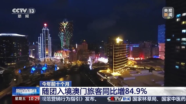 澳门特区统计暨普查局资料显示,2024年前十个月,随团入境澳门的旅客169.1万人次,同比增加84.9%。澳门酒店业场所的客房平均入住率85.6%,同比上升4.8个百分点。住客1206.8万人次,同比增加9.3%。通过旅行社购买外游服务的澳门居民47.3万人次,同比增加44.8%。