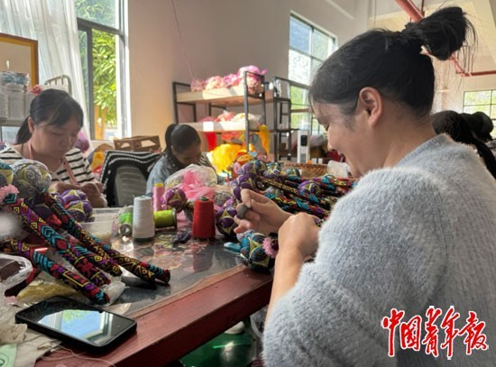 马桂验的老公在外打工,家里要种田又有两个孩子要照顾,她脱不开身外出打工,只能在家里干着急。如今,她成了绣球公司的绣娘,闲暇时来制作绣球,赚的钱也可以满足家中的日常开销。“现在有工厂,有订单保障,做得多,卖得多,也赚得多。”