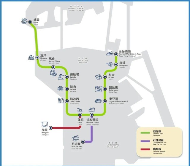 横琴线全长约2.2公里,设有莲花站、横琴站两个车站,全程行车时间约2分钟,班次约6分钟一班。
