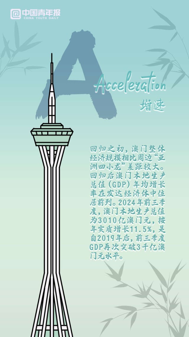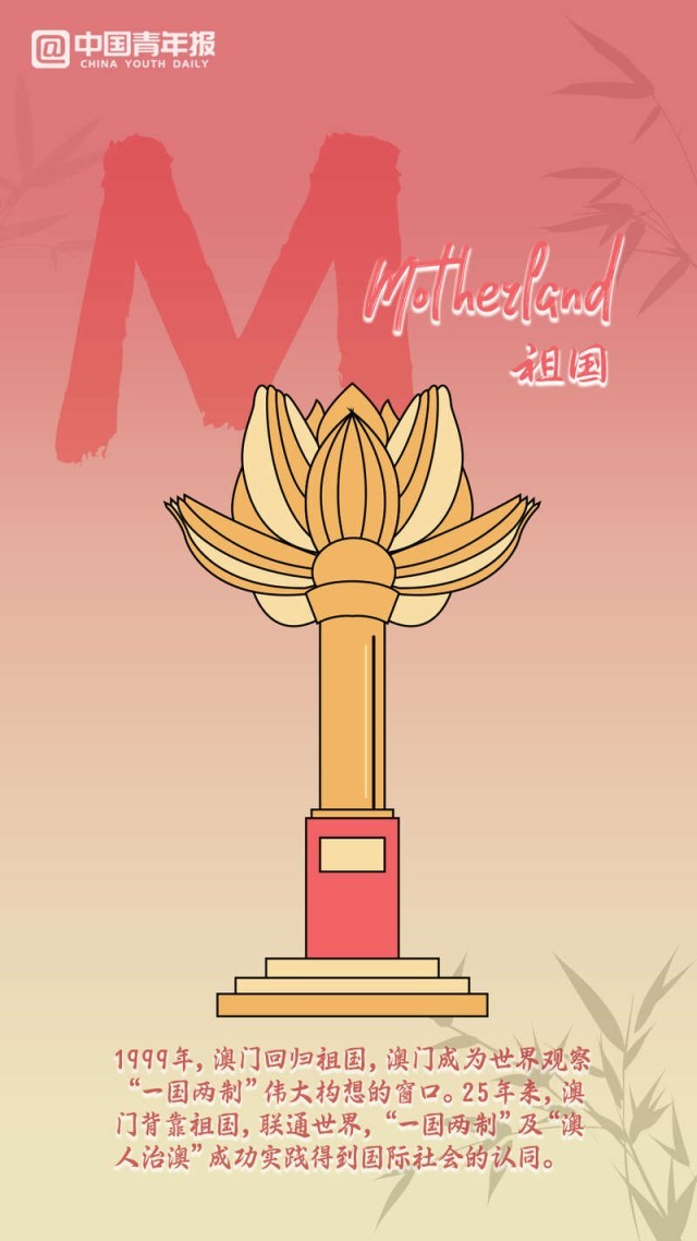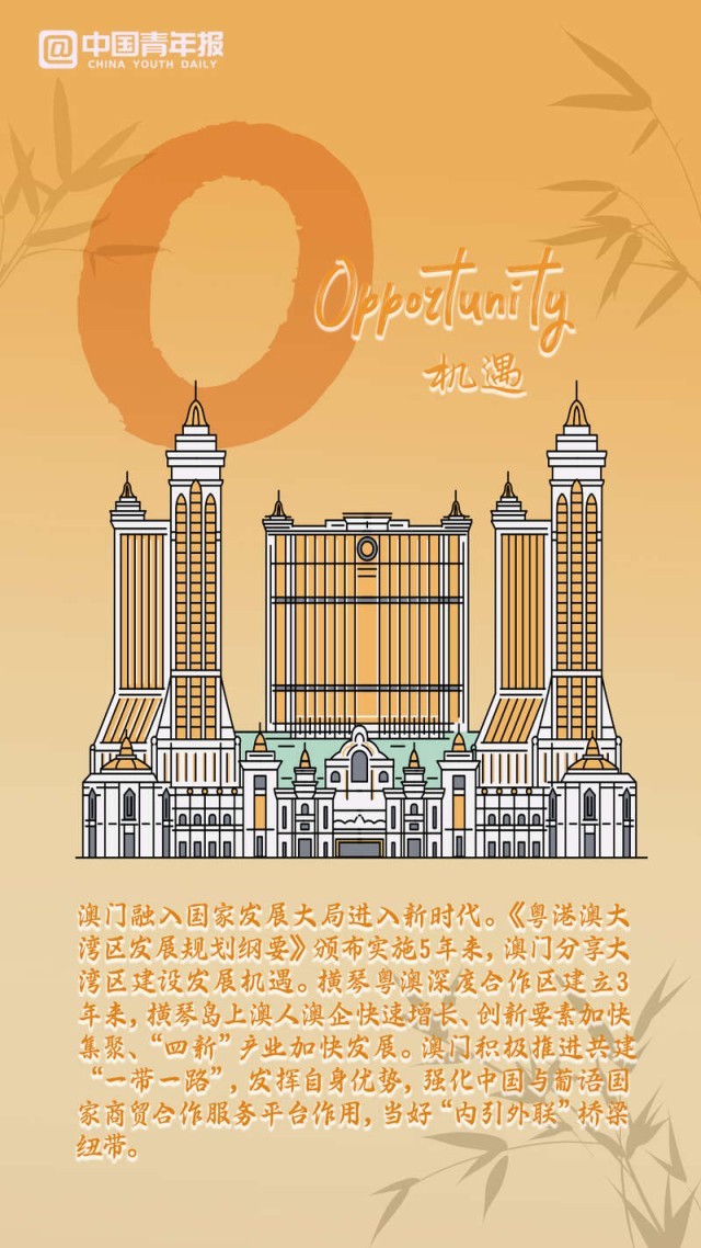 今年是澳门回归祖国25周年。25年来,澳门背靠祖国,经济实力大幅提升,“一国两制”及“澳人治澳”成功实践得到国际社会认同。多元文化融合、美景美食荟萃,全新的澳门向世界走来。透过5个关键词,让我们一起走进一个新澳门!(文案:朱彩云 赵安琪 制图:王忻媛)