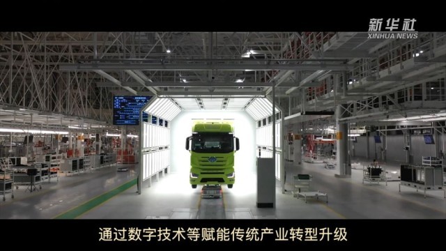 中国一汽通过技术创新和智能化技术应用,持续推进传统行业“高端化、智能化、绿色化”升级,同时,利用数智化的智能技术,实现了“商品车下线、数字化车入云”的技术,赋能传统产业转型升级。