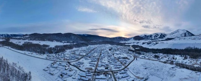 新疆阿勒泰地区布尔津县拍摄的禾木村冬景 新华社