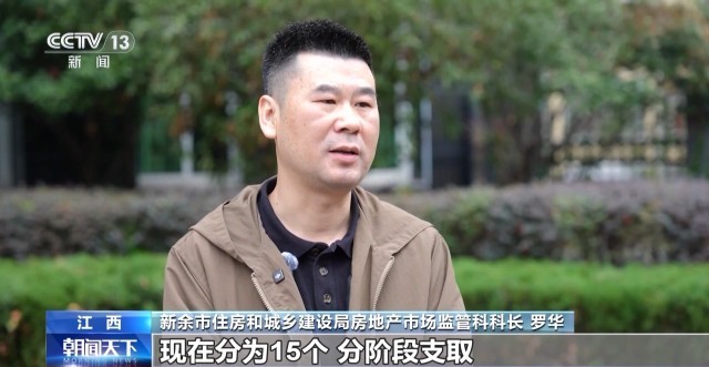 江西新余市住房和城乡建设局房地产市场监管科科长 罗华:原来监管比例的6%要在项目竣工交付后才支取,现在分为15个分阶段支取。包括这房屋的主体封顶,包括我们的水电气安装等各个时间节点,在确保预售资金保障用于项目完工交付的同时,资金使用更加高效。