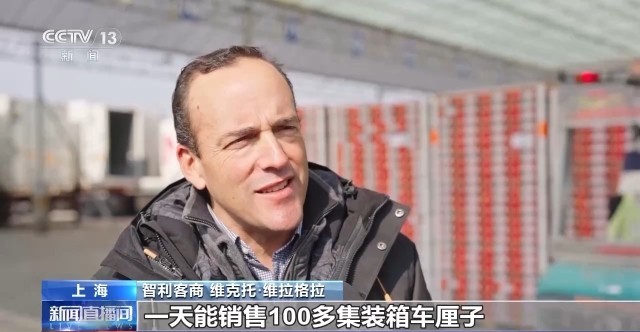 智利客商 维克托·维拉格拉:这里很令人惊奇,一天能销售100多集装箱车厘子。我们会继续扩大车厘子种植面积,并向中国市场加大供给。