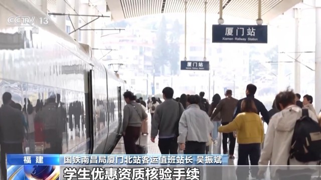 国铁南昌局厦门北站客运值班站长 吴振斌:现在中国高等教育学生信息网和铁路12306系统已实现信息对接,学生旅客每学年乘车前可通过铁路12306App在线办理学生优惠资质核验手续。