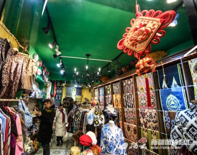 市民在小巷一家民族特色服饰店购物。天山网-新疆日报记者 周鹏摄