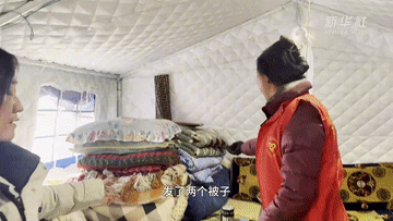 记者看到,安置点刚刚运送来一批活动板房,这些活动板房搭建好之后,将和这个安置点之前搭建的帐篷一起为受灾群众温暖过冬做好保障。