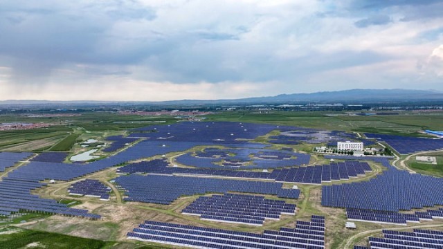 这是位于山西省大同市云州区杜庄乡土井村的“熊猫电站”(2024年8月19日摄,无人机照片)。新华社发(赵展 摄)