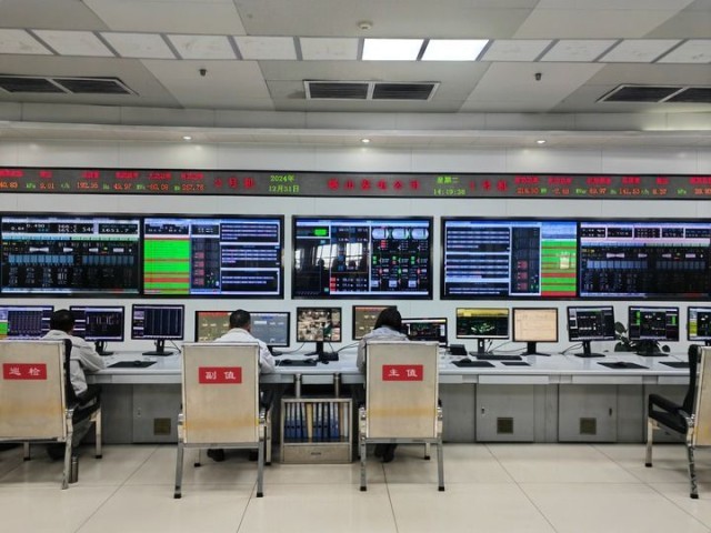 工作人员在晋控电力塔山发电山西有限公司调度中心忙碌(2024年12月31日摄)。新华社记者 樊欣阳 摄