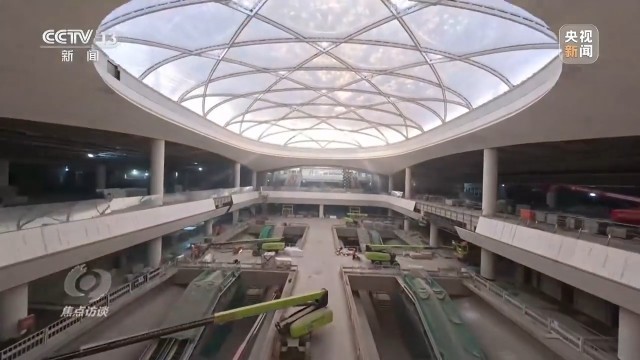 北京城市副中心站综合交通枢纽工程施工02标段二分部装修工程负责人 贺巍:所谓阳光引入站台,是指阳光通过这个ETFE的膜,直接照射到乘客乘车的站台上,不仅能够给车站提供照明,而且每年省下的电在48.6万度左右。
