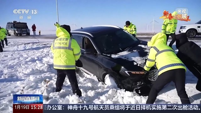 一边安排警力疏导交通,一边组织人员救助被困车辆。风雪越来越大,很快在路上形成了一道道更高的雪梁。救援车辆一辆接一辆向前冲,压平积雪,帮助被困的车辆离开。风雪中这一个个逆风而行的身影成了受困群众最强大的依靠。