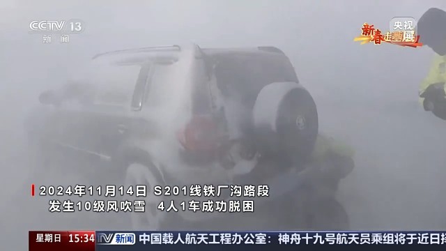 新疆塔城地区托里县交警大队大队长 李斌:目前咱们318线风太大,现在所有的车辆全部都进不去。前面有几辆闯进去的车刚都陷下去了,现在我们正在实施救援,请大家多多理解。