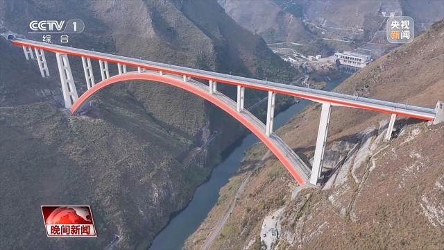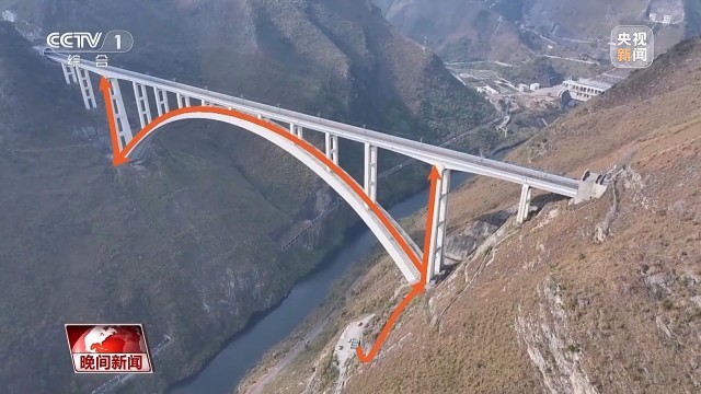 总台央视记者 姜珊:我们刚刚是翻了一座山才来到这个地方的,可以清晰看到桥墩,桥面距离底下的江面的距离,大概是有300米,也就是相当于100多层楼的高度。