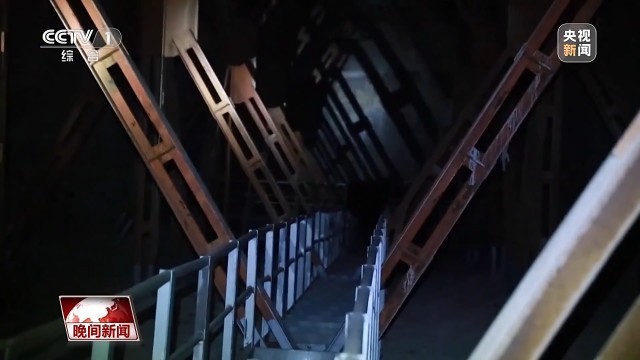 从桥拱上的一处小孔,顺着垂直阶梯,下到了入了拱圈内部。在伸手不见五指的拱圈内部,工人只能靠头灯和手电照明,检查每一根梁柱的状态。把1公里长的拱圈从头检查到尾,需要在幽闭、黑暗的环境里,孤独地行走两个小时。