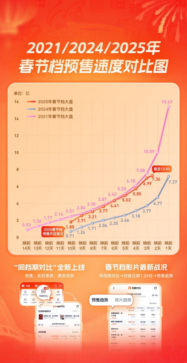 春节临近,电影市场逐渐火热。2025年春节档自1月19日开启预售以来,已刷新多项纪录。今年春节档电影类别更加丰富,预售前五当中涵盖了武侠、神话、动画、悬疑、动作等多种题材。影片平均时长超过137分钟,刷新中国影史春节档片长最长纪录。同时,绝大多数大片的最低票价与去年保持一致。