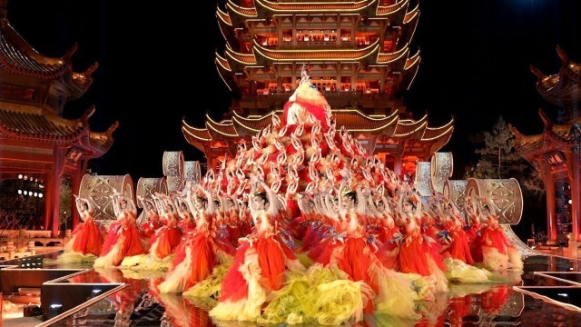 黄鹤楼前,241名女演员演绎“凤凰涅槃”。