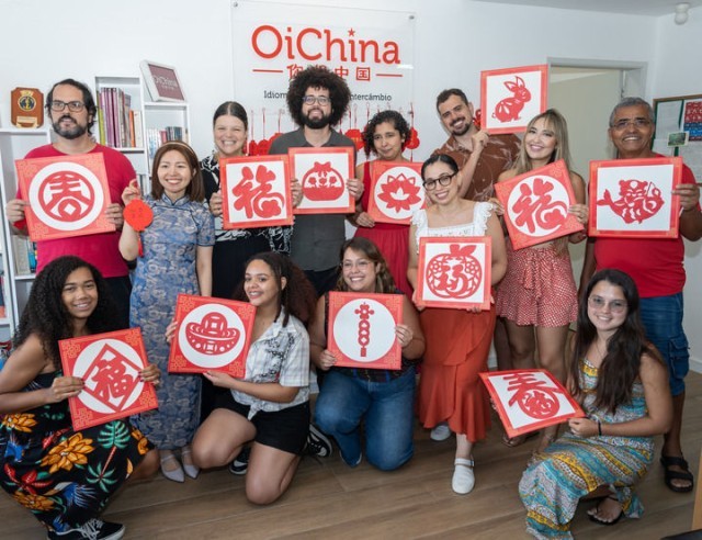 2025年1月18日,人们在巴西里约热内卢举行的中国春节文化体验活动上展示他们一起制作的剪纸。新华社记者 王天聪 摄