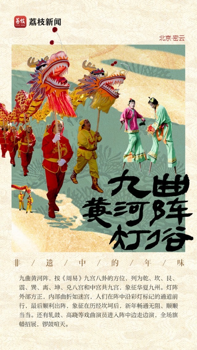 李振忠:北京市密云区的“九曲黄河阵灯俗”是元宵节的一项传统民俗活动,俗称九曲黄河阵灯会、灯场子。明洪武四年(公元1371年),山西移民将灯场子带入密云,至今已有600多年的历史,灯俗集民间扎制工艺和游艺于一体,具有独特的欣赏价值。
