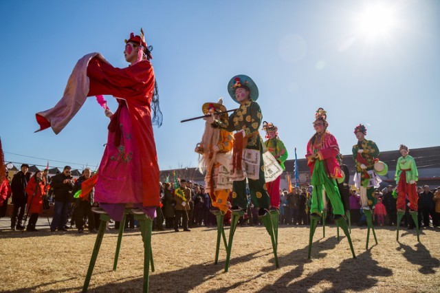 九曲黄河阵灯俗的显著特点是灯阵、花会、戏曲三位一体,相映生辉,形成别具一格的特色。
