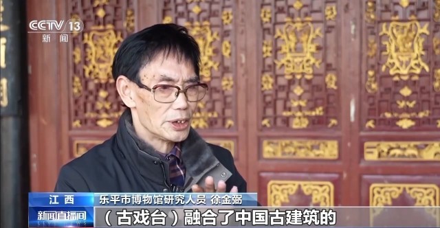 乐平市博物馆研究人员 徐金弼:古戏台融合了中国古建筑的基本重要的元素,雕工精湛,把徽派雕刻艺术全部集在一起。