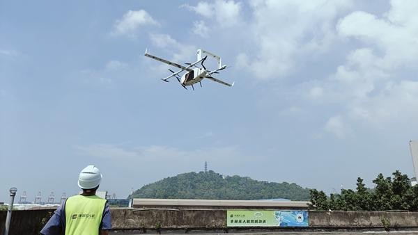 2024年9月,丰舟90型无人机正在深圳市执行跨城物流配送任务。受访者供图