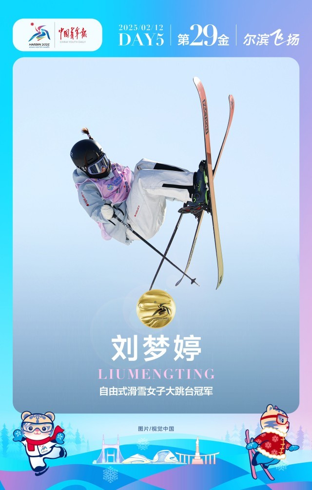 大跳台是刘梦婷主项,今年1月,她获得国际雪联自由式滑雪世界杯奥地利站女子大跳台冠军,这是她职业生涯首个世界杯冠军。(中青报·中青网记者 梁璇/文 聂亚栋/海报)
