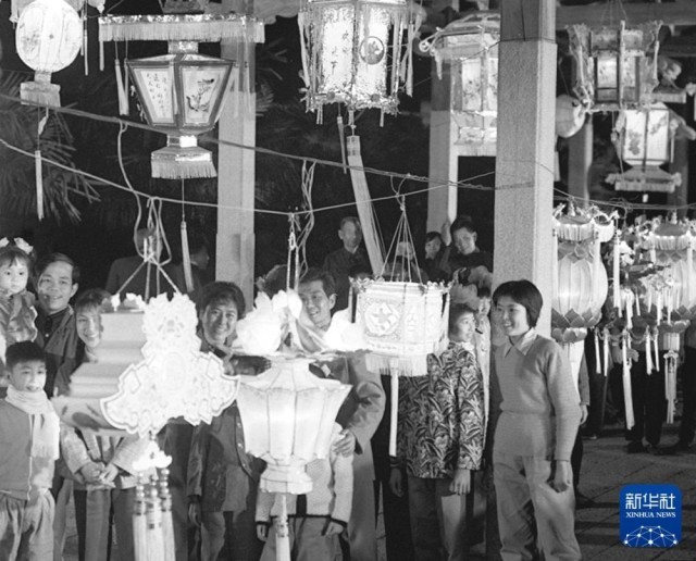 1979年元宵节,人们在福建泉州观赏各式花灯。新华社发(黄必贤 摄)