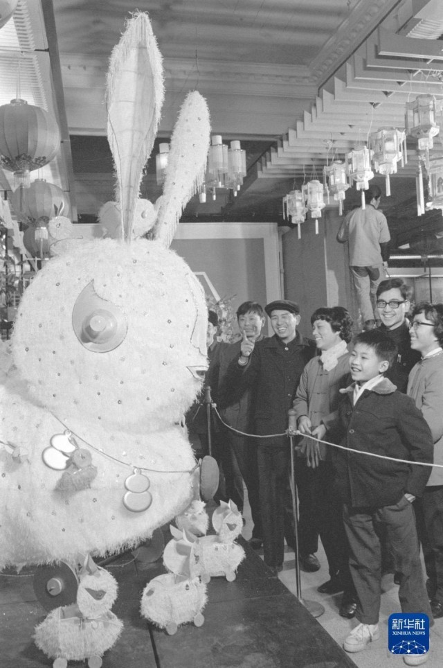 1981年,上海举办了为期一个月的元宵“灯花展览”,人们观赏各式花灯。新华社记者 徐义根 摄