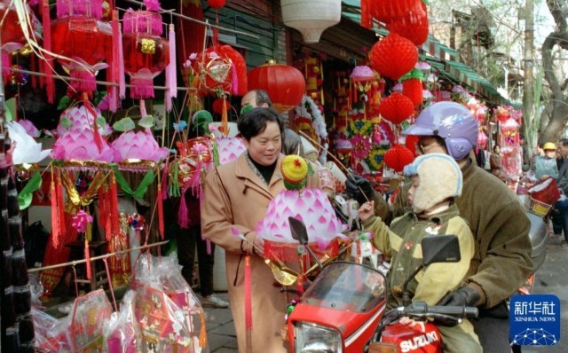 1998年元宵节前,市民在福州市南后街买花灯。新华社记者 李开远 摄
