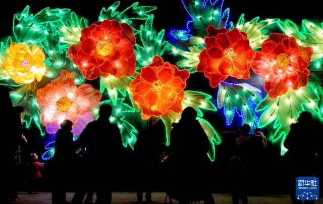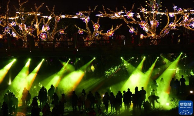 2016年2月22日,游客在武汉园博园观赏彩灯。新华社记者 程敏 摄