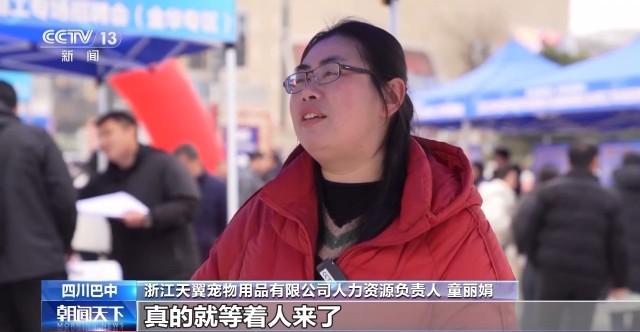 浙江天翼宠物用品有限公司人力资源负责人 童丽娟:二三月的订单就排在这里,真的就等着人来了。