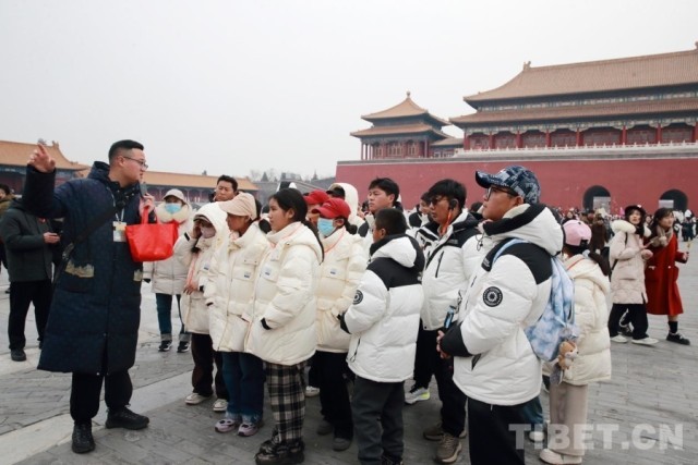 2025年2月11日,西藏自治区阿里地区边境县31名师生在京研学,图为同学们参观故宫博物院 摄影:陈卫国