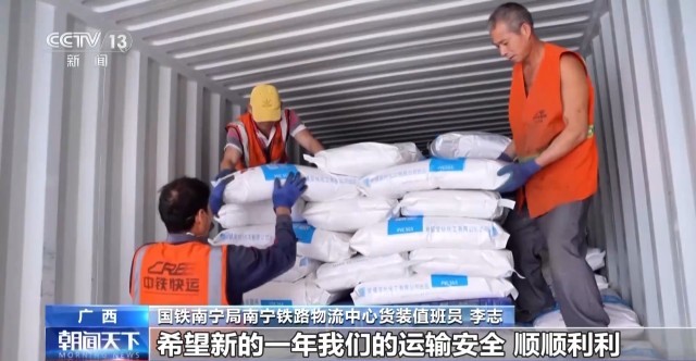 国铁南宁局南宁铁路物流中心营销工作人员 黄文瀚:近期我们吸引了很多客户来发运中越班列,1月份同比增长了760%。新的一年我希望有更多的中越班列客户。