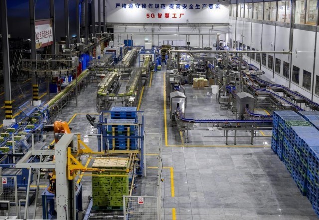这是盼盼食品集团的5G智慧工厂饮料自动化生产车间(2024年8月23日摄)。盼盼食品集团年营收81亿元,产品远销50多个国家和地区。新华社记者 魏培全 摄