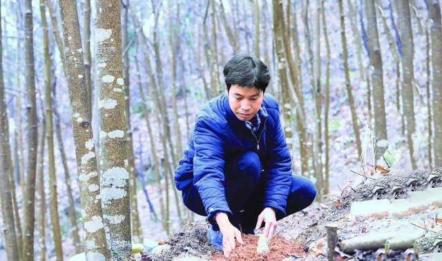 安县双峰乡“乡土专家”包金亮检查林下作物生长情况。图片由受访者提供