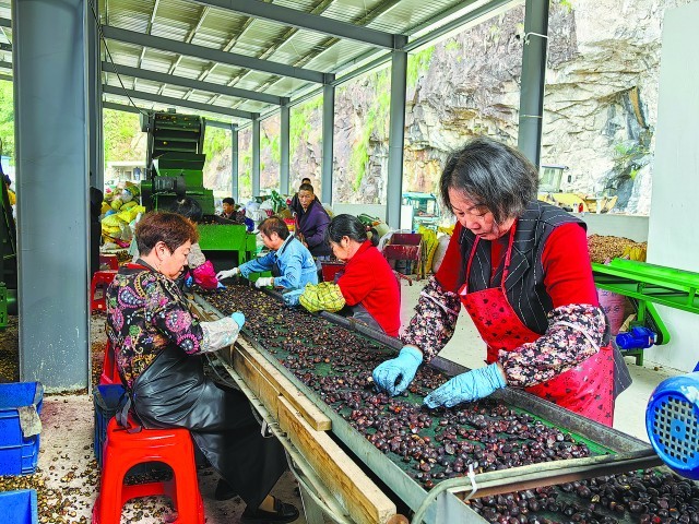 青田县季宅乡浙南油库·兴林益农共富工坊内,村民正在分拣油茶籽。图片由受访者提供