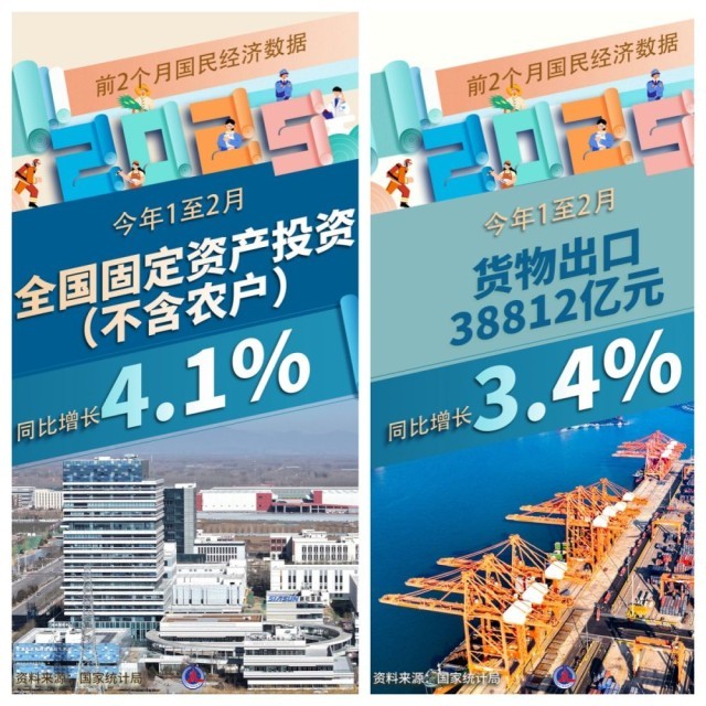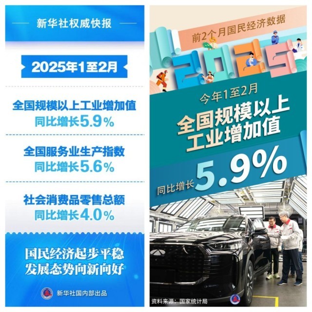 今年前2个月,工业服务业较快增长,消费投资继续改善,就业形势总体稳定,新质生产力成长壮大,经济运行起步平稳,发展态势向新向好,展现中国经济强大韧性。