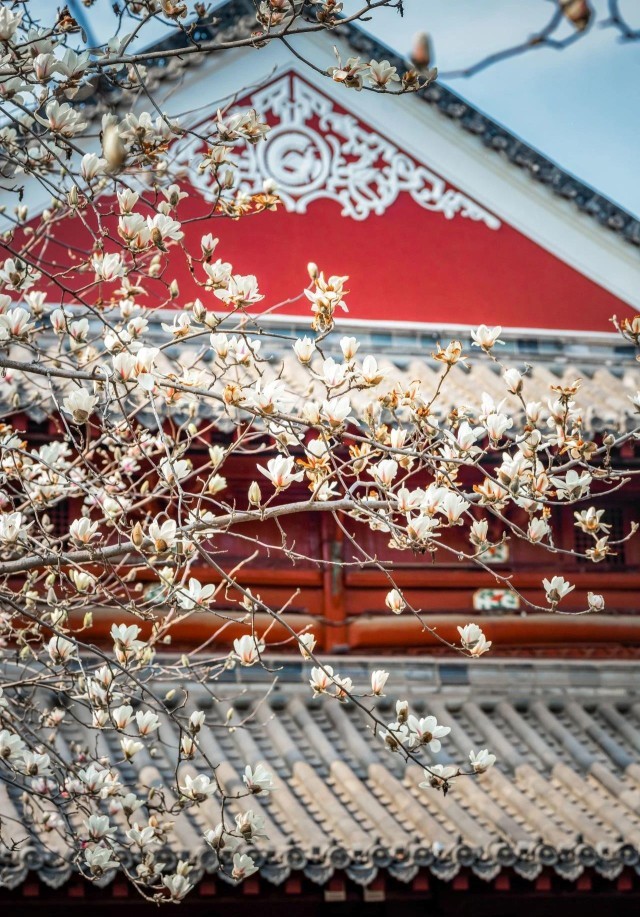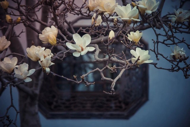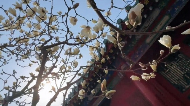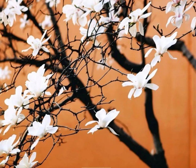 △明陆治、王穀祥《海棠玉兰图》(局部),台北故宫博物院藏。