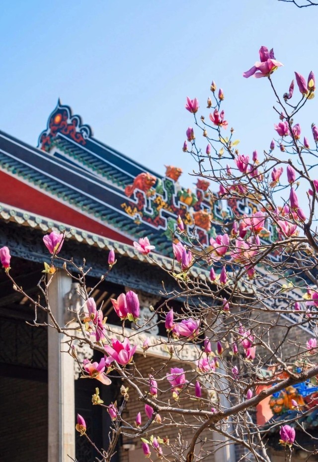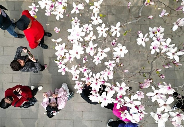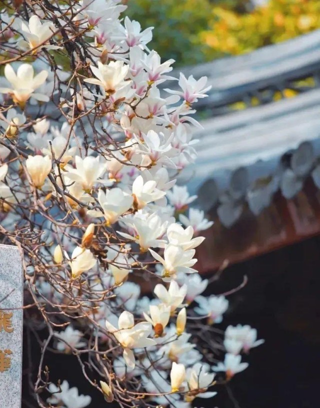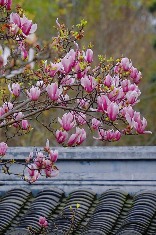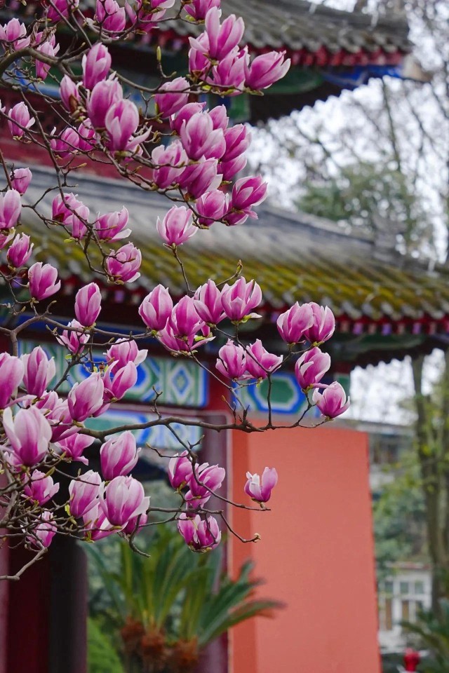 其中两株紫中带白、花俱双色的“二乔玉兰”