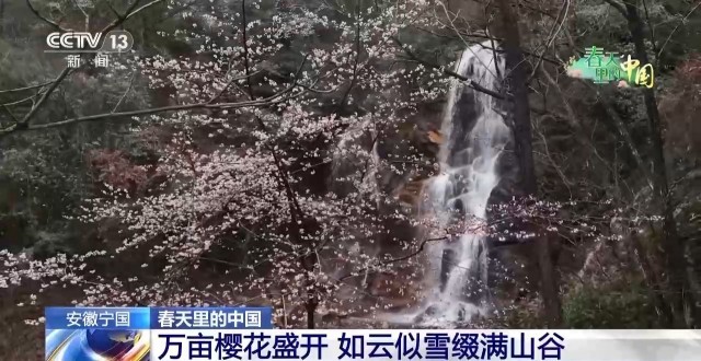 万亩樱花盛开 如云似雪缀满山谷