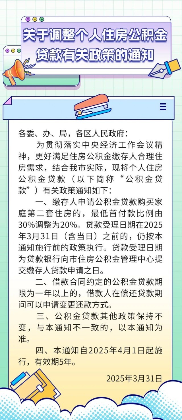 中新网3月31日电 据天津公积金微信公众号消息,天津公积金发布《关于调整个人住房公积金贷款有关政策的通知》。通知中指出,缴存人申请公积金贷款购买家庭第二套住房的,最低首付款比例由30%调整为20%。本通知自4月1日起实行,有效期5年。全文如下: