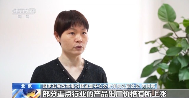 国家发展改革委价格监测中心分析预测处副处长 何晓英:部分重点行业的产品出厂价格有所上涨。像铜、铝等有色金属矿采选,冶炼和压延加工业的产品出厂价格同比都明显上涨,文体娱乐用品制造业的产品出厂价格同比也有所上涨。