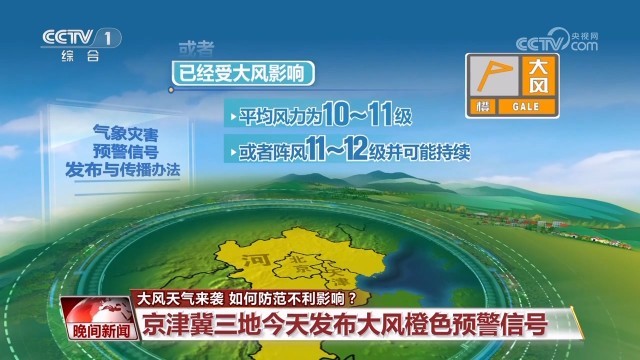 北京市气象台首席预报员 雷蕾:10级的阵风实际上就可以在户外导致非常重的灾害,比如大树或者电线杆倒伏。北京平原地区是9级到11级阵风,而且持续时间比较长,影响范围比较广。
