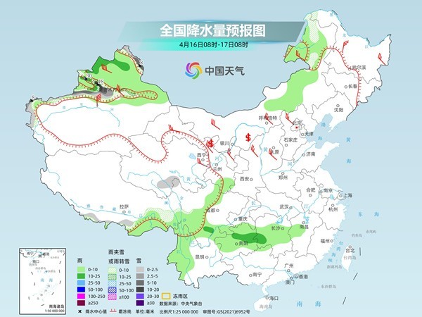 具体来看,中央气象台预计,今天,新疆沿天山地区和南疆西部山区、内蒙古东北部、青海南部、西藏南部等地部分地区有小到中雪或雨夹雪,其中,新疆沿天山等地局地有大到暴雪。新疆北部、内蒙古东部、湖南中部、江西中部、四川南部、贵州大部、云南西部等地部分地区有小到中雨,其中,新疆伊犁河谷局地有大雨。