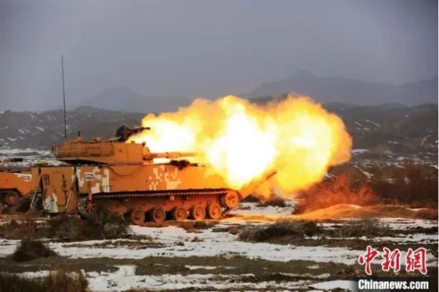 资料图:海军陆战队两栖装甲突击车实弹射击。黎友陶 摄