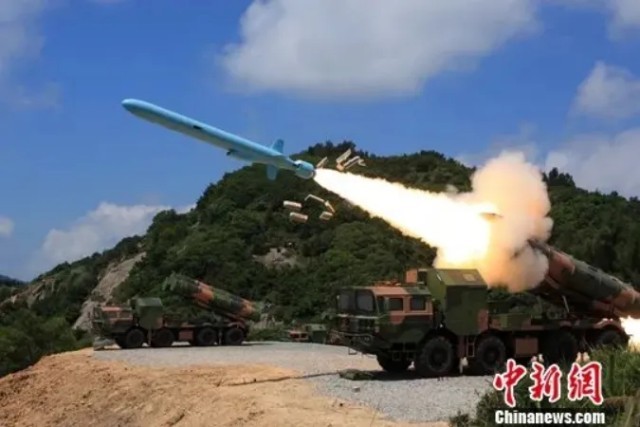 图为海军机动岸舰导弹实弹射击。中新社发 赵长宏 摄